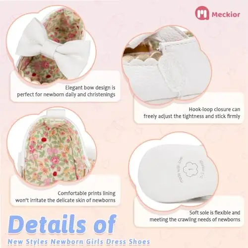 Meckior Yenidoğan Kız Bebek Elbise Ayakkabıları, bebeğinizin ilk adımlarında ona eşlik edecek en ideal seçeneklerden biridir. Ürünün temizliği nemli bir bezle silinerek yapılabilir. Lütfen bebeğinizin ayak ölçüsünü dikkate alarak uygun beden seçimi yapınız. Ürünün uzun ömürlü olması için direkt güneş ışığına maruz bırakmaktan kaçınınız. Meckior kalitesi ve güvencesiyle üretilen bu ayakkabılar, bebeğinizin sağlığı ve konforu ön planda tutularak tasarlanmıştır.