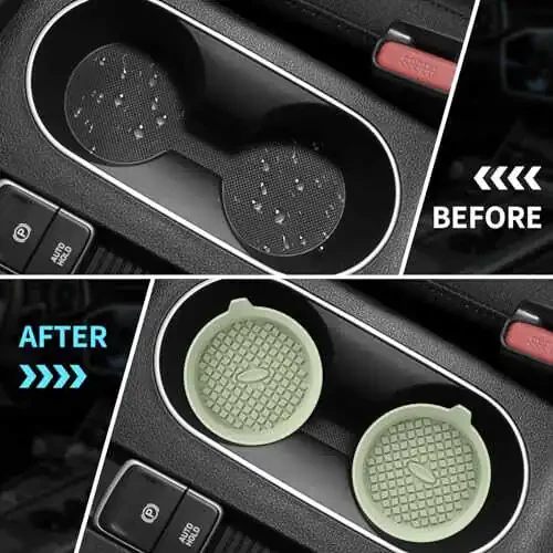Enhance your car's interior with style and functionality with the ME.FAN Coasters [4 Pack]. Crafted from silicone, these coasters are designed to securely hold your cups and other items. The recessed interior design seamlessly blends into your interior, offering a sleek and sophisticated look. With universal compatibility, it's a perfect choice for most car models.