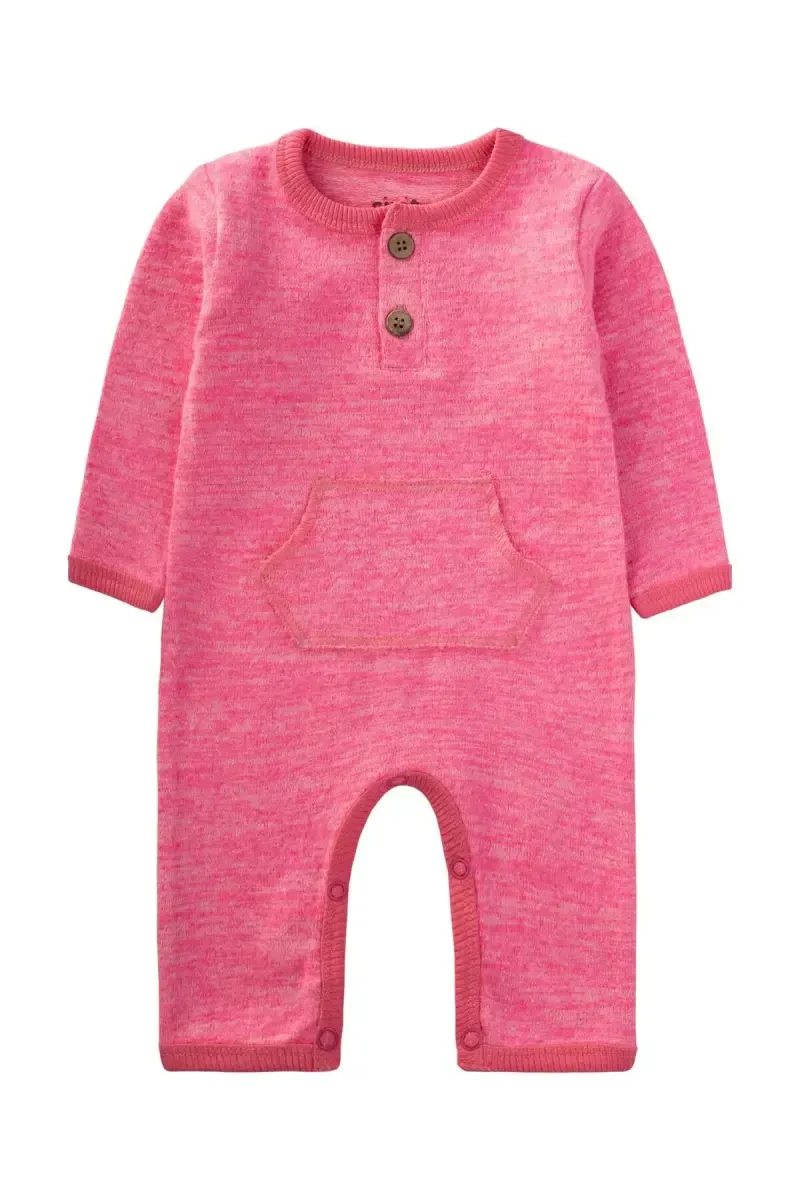 Melange Kangaroo Pocket Baby Jumpsuit - 0-3 Years | Cotton, Comfortable and Stylish Design