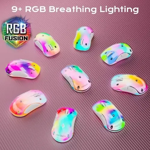 The Memzuoix 2.4G LED Wireless Mouse is not just a mouse, but also a stylish accessory! With its transparent design and 9 different colors of automatically changing RGB LED lights, it adds vibrancy to your workspace or gaming area. In addition to its unique appearance, this wireless mouse stands out with its practical features, offering both aesthetics and functionality. In particular, its customizable design with a magnetic cover allows you to personalize it according to your preferences, setting it apart from other mice. You can easily remove the cover and apply your own design to have a mouse that is completely unique to you. Whether you're using it at work, playing games at home, or considering it as a gift for your loved ones, the Memzuoix wireless mouse is an excellent choice in any situation. Say goodbye to battery replacements with its rechargeable built-in battery! It can be easily charged with a USB-C cable and offers long-lasting use. You can further extend the battery life with the energy-saving mode. In "ON" mode, it automatically enters sleep mode after 8 minutes of inactivity and reactivates with a single click. In "LIGHT" mode, sleep mode is disabled, while you can turn off the LED lights whenever you want. This allows you to adjust the battery life according to your needs. Thanks to its ergonomic design and compact dimensions, the Memzuoix wireless mouse offers comfortable use all day long. Suitable for both right-handed and left-handed users, this mouse, with its dimensions of 4.7×2.3×1.5", easily fits into a laptop bag and is ideal for carrying with you on trips. Whether you're working in the office, taking notes in a cafe, or preparing a presentation on the go, the Memzuoix wireless mouse will always be with you. Without the need for driver installation, you can start using it instantly by simply plugging in the USB receiver. The 2.4GHz wireless connection technology provides a seamless and fast connection up to 10 meters. With a 1200 DPI optical sensor, it offers a fast and precise tracking experience. The DPI setting is fixed and cannot be changed. Compatible with Windows, Mac, and Linux operating systems, the Memzuoix wireless mouse is an ideal choice for laptops, desktop computers, and PCs. However, please note that it is not compatible with Chromebooks. We would also like to point out that the side buttons (forward/back) are not supported in the MacOS operating system. Battery life varies depending on the usage mode. It offers approximately 17 hours of use in "LIGHT" mode and approximately 90 hours of use in "ON" mode. The indicator light turns green during charging and turns off when charging is complete. Finally, please note that this mouse is not a "silent" mouse.