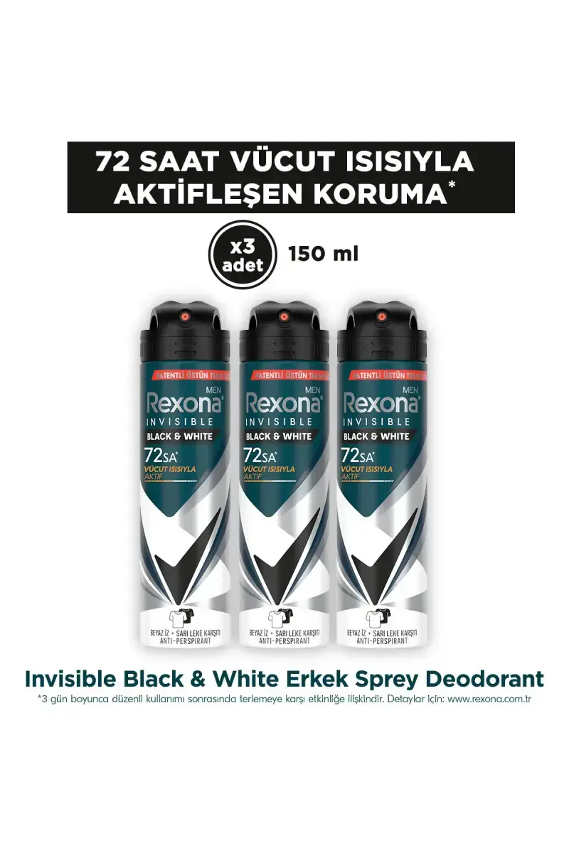 Мужской дезодорант-спрей Invisible Black & White 72 часа непрерывной превосходной защиты 150 мл X3