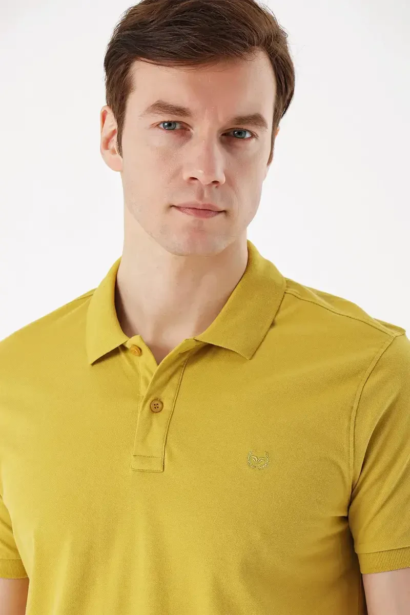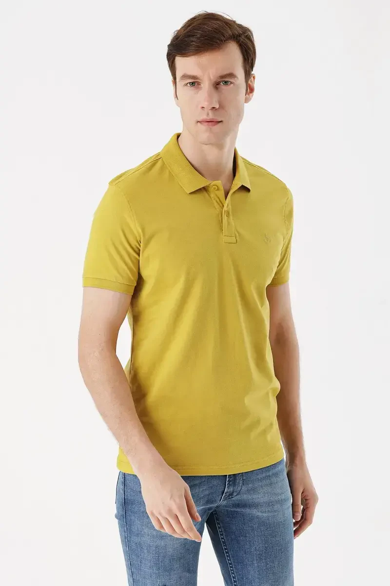 Men's Lemon Mousse Basic Plain 100% Cotton Slim Fit Short Sleeve Polo Shirt is an ideal option that offers both style and comfort on hot summer days or for daily wear. The product is made of 100% cotton, allowing your skin to breathe and providing all-day comfort. Thanks to its slim fit cut, it offers a body-hugging look while not restricting your freedom of movement. The polo collar detail adds a classic touch to the t-shirt, while the short-sleeved design helps you stay cool in hot weather. The lemon curd color adds a different touch to your style, offering an energetic and vibrant look. The basic plain pattern allows you to easily match the t-shirt with different combinations. This t-shirt, which you can easily combine with shorts, jeans or chino pants, will be one of the indispensable pieces of your wardrobe. In addition to daily use, you can easily choose it for special occasions or weekend activities. The soft texture of the cotton fabric does not irritate your skin and offers all-day comfort. Thanks to its high-quality material and workmanship, it offers a long-lasting use. It does not fade and does not shrink. It also saves you time thanks to its easy-to-iron feature. This t-shirt will appeal to both stylish men and those who do not want to compromise on comfort. Men's Lemon Mousse Basic Plain 100% Cotton Slim Fit Short Sleeve Polo Shirt, which is a perfect choice for those looking for style and comfort together, is a must-have in your wardrobe.