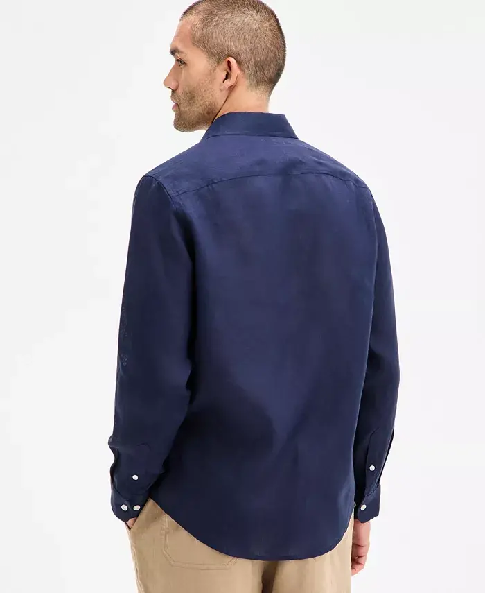 Men's 100% Linen Shirt, Created for Modazone - Navy Blue