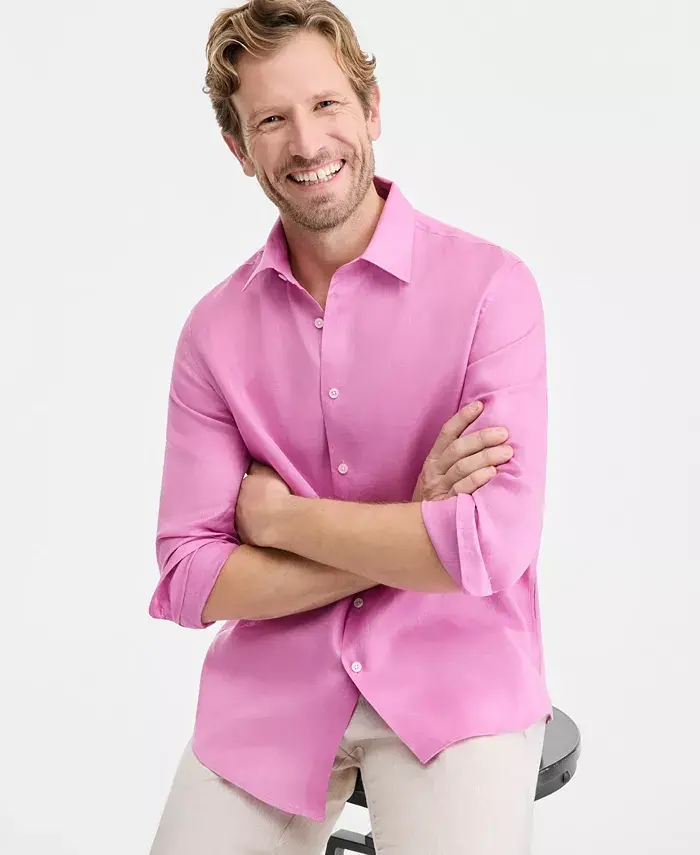 Men's 100% Linen Shirt, Created for Modazone - Pink Azalea