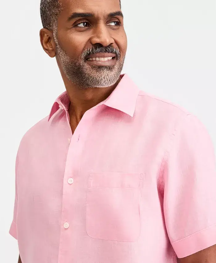 No button-down collection would be complete without a classic linen look, and this shirt from Club Room is ready to enhance your regular rotation with a laid-back, spread-collar vibe. Regular fit Spread collar Button closure Short sleeves Pocket at left chest OEKO-TEX® STANDARD 100 certified. Tested in an independent lab and verified to be safe from harmful substances [SE0200 158631| Testex] Created for Modazone Linen Machine washable Imported