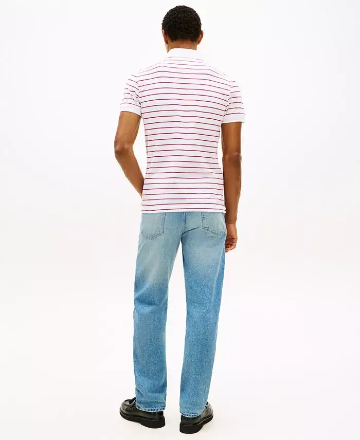 Elevate your casual style with Tommy Hilfiger's iconic 1985 Slim-Fit Polo Shirt. Crafted from cotton pique with THFlex, this polo embodies classic american cool with a contemporary twist. The timeless polo collar and flag embroidery at the left chest complete the look, making it an essential addition to your wardrobe. Model is wearing a size medium Slim-fit for a modern silhouette Classic polo collar for versatile styling; Pull-on closure Fit across chest 15 1/4" Crafted with high-quality cotton pique THFlex ensures comfort and flexibility Signature flag embroidery showcases the brand Tommy Hilfiger's slim-fit polo that is made to be fitted across the chest and shoulder for a slim and sleek loo 96% cotton, 4% elastane Machine wash Imported