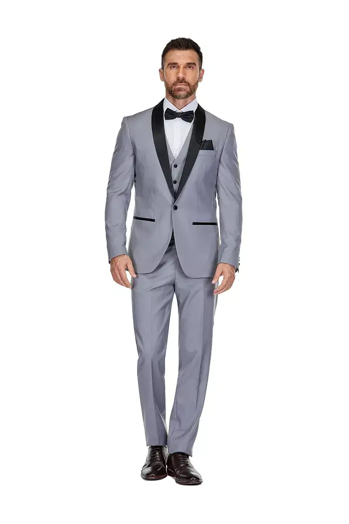 Men's 3-Piece Slim Fit Shawl Lapel Tuxedo - Grey