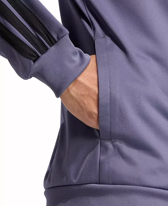 Introducing a timeless piece for the man who values style. This knit tricot track top from adidas offers a regular-fit for ease and comfort. With an embroidered logo on the chest and bold 3-stripes branding, it's a classic addition to any sportswear collection. The side pockets add a practical touch to this staple piece. Regular fit Mock neck; front zip closure Embroidered logo at left the chest; long sleeves with 3-stripes branding; cuffed hem Side pockets 100% polyester Machine wash Imported