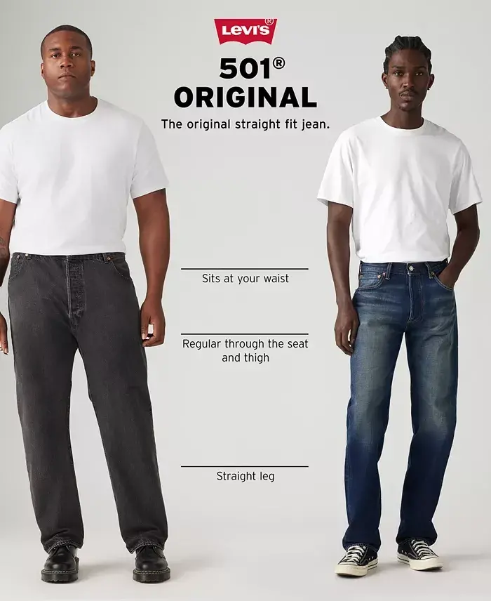 The iconic straight-fit with signature button fly, the 501 jean from Levi's sits at the waist and is regular through the thigh with a straight leg. It is the original for a reason, featuring a classic straight leg fit that offers a stylish cut and combines it with the comfortability and ease of wear that we look for in a denim essential. Versatility is key with this design, whether you want to dress them up with a leather shoe, or make a more casual choice with a sneaker, the styling opportunities are endless. Straight fit; classic seat and thigh Sits at waist; button fly Straight leg; 16" leg opening Cotton, elastane Machine wash Imported