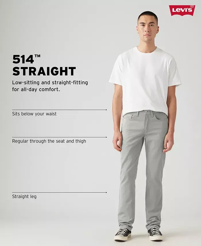 Our 514 straight-fit jeans sit low on the waist and are generous through the seat and thigh with a straight leg. Best for athletic to medium builds. Button and zipper fly closure Sits below the waist Straight leg; 16.5" leg opening Lyocell fibers are extracted from sustainably grown wood sources. Straight fit; regular through hip and thigh Cotton, lyocell, elastane Machine wash Imported
