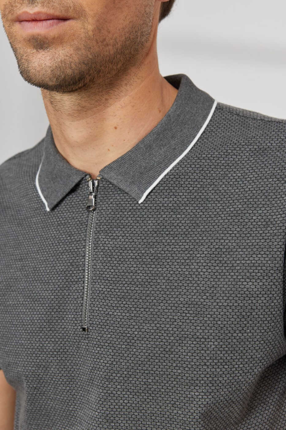 The Men's Anthracite Slim Fit Narrow Cut Polo Collar Jacquard T-Shirt is a special design that combines elegance and comfort. This t-shirt, offered by UGStore, is one of the basic pieces that should be in the wardrobe of the modern man. The unique texture of the jacquard fabric adds a sophisticated touch to the t-shirt, while the slim fit cut creates a stylish silhouette with its body-hugging structure. The polo collar detail offers a classic look, while the short-sleeved design keeps you cool and comfortable on hot summer days. This t-shirt is a perfect choice for both daily use and special occasions. You can create a sporty style by combining it with jeans, or you can achieve a more formal look by wearing it with elegant trousers. Produced with Altınyıldız Classics quality, this t-shirt is long-lasting and durable. The polyester, viscose, and elastane blend in the fabric ensures that the t-shirt retains its shape and provides comfortable use throughout the day. The anthracite color adapts to all kinds of combinations and can be easily matched with other pieces in your wardrobe. The pocketless design preserves the simple and stylish look of the t-shirt, while the slim fit cut creates a modern silhouette with its body-hugging structure. This special piece of the summer collection keeps you cool and stylish in hot weather. The L size on the mannequin provides a perfect fit for a man with a height of 1.89 cm and a weight of 80 kg. You can easily find and order it with the product code 4A4823200019ATR. This t-shirt is an option that will meet the expectations of both stylish men and those who value quality.