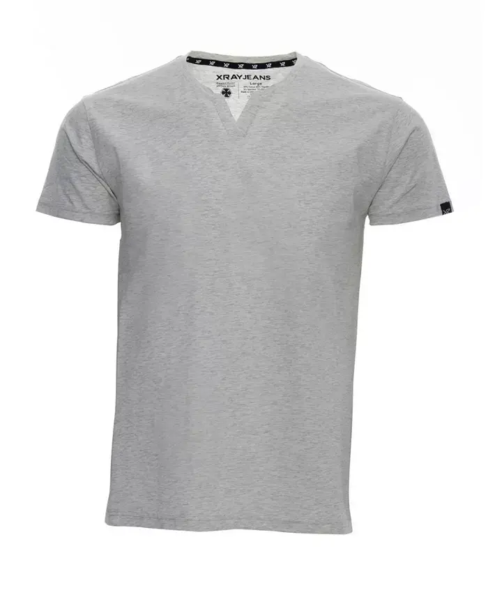 The Men's Basic Notch Neck Short Sleeve T-shirt-Oatmeal is easily cleaned thanks to its machine washable feature. Please follow the washing instructions. Do not use bleach. Iron at low temperature. For the product to last longer, wash with similar colors. The size on the model is Medium. Different size options are available. The product is shipped in its original packaging.