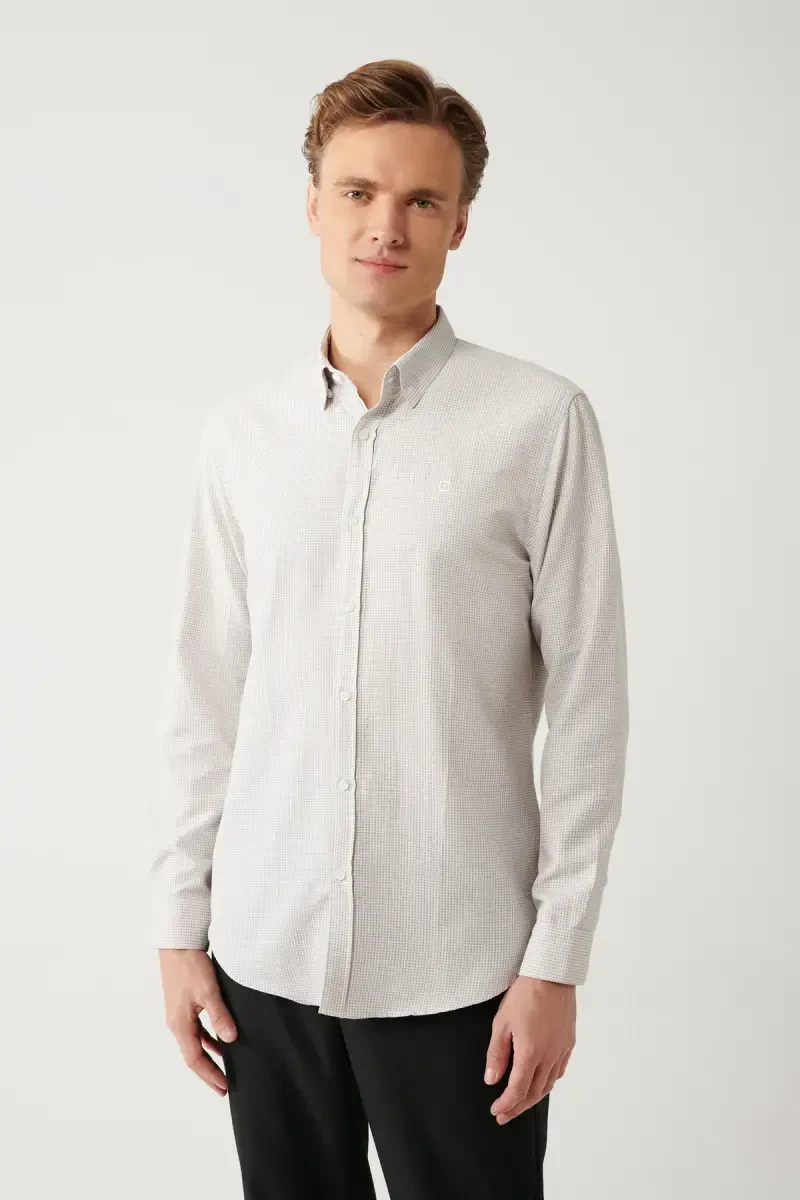 Designed to add elegance and comfort to your everyday style, the Men's Beige Shirt stands out with its sophisticated look and comfortable fit. Its cotton fabric provides breathability and softness, ensuring a comfortable wearing experience all day long. With its buttoned collar and slim fit cut, it creates a stylish look, while its easy-iron feature saves you time and keeps you looking sharp.