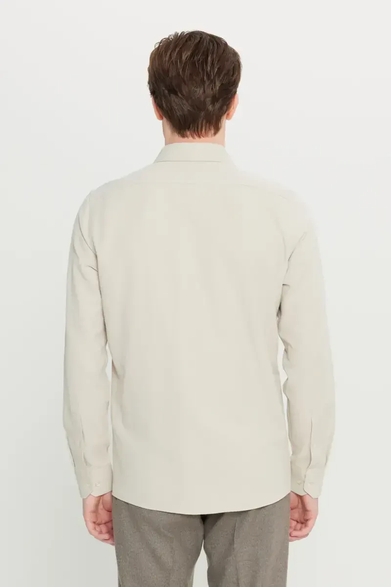 Beige Slim Fit Shirt: Easy Iron, Italian Collar, Slim Fit, Textured Men's Shirt