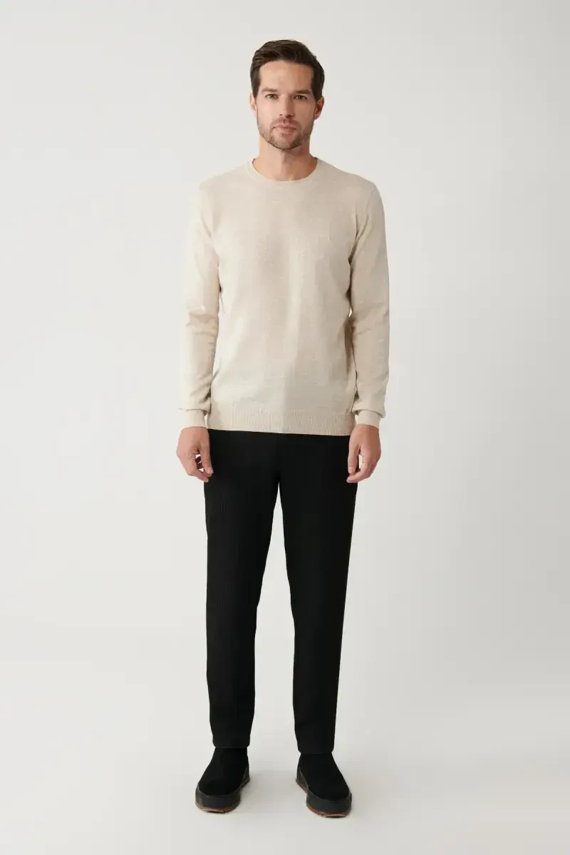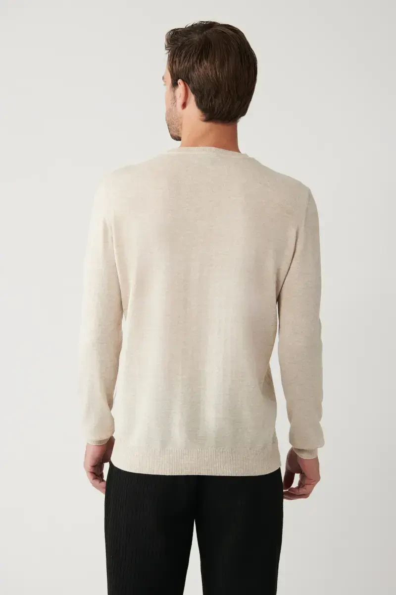 Combining style and comfort, the Men's Beige Knit Sweater is the perfect choice to keep you warm in the winter months. Featuring a bicycle neck for a modern look, the sweater provides all-day comfort with its soft wool texture. Its regular fit provides a perfect fit for your body and can be adapted to any style.