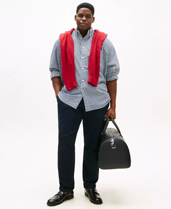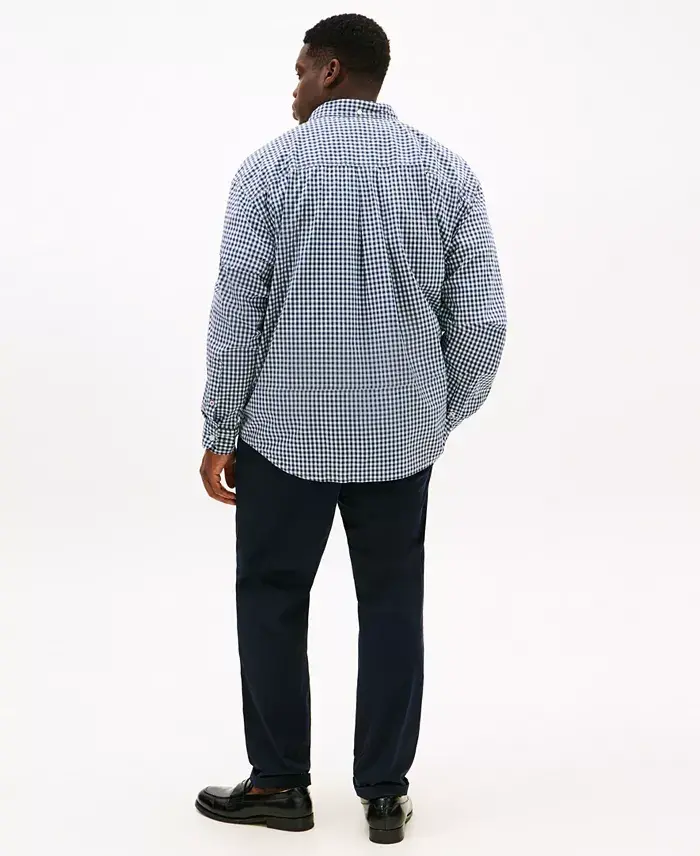 Highlight your timeless style in any setting with the always appealing and versatile gingham check print of Tommy Hilfiger's Twain button-up shirt. Classic fit Button-down collar Tommy Hilfiger flag logo at left chest pocket Created for Modazone Cotton/elastane Machine washable Imported