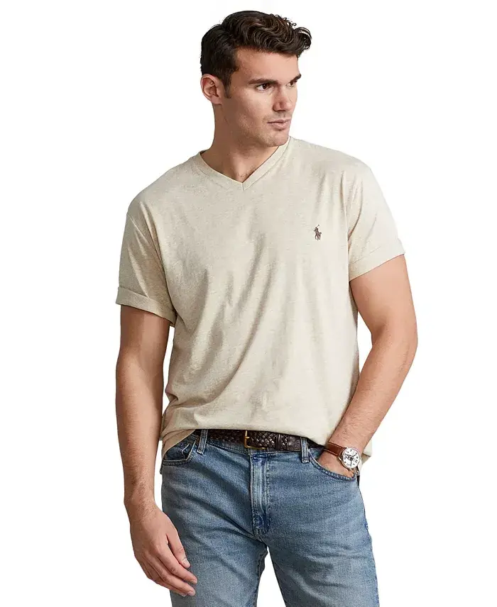 This soft cotton jersey T-shirt is a tried-and-true essential for any casual wardrobe, plus its relaxed-fit provides extra comfort. Big 2X has a 32.5" body length, a 22.5" shoulder, and a 56" chest Size tall 2L has a 35.5" body length, a 22.5" shoulder, and a 56" chest Classic fit Ribbed V-neck; pullover closure Short sleeves; signature embroidered Pony at the left chest 100% cotton Machine wash Imported