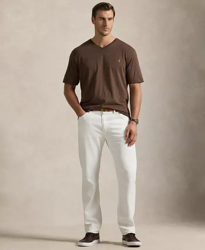 This soft cotton jersey T-shirt is a tried-and-true essential for any casual wardrobe, plus its relaxed-fit provides extra comfort. Big 2X has a 32.5" body length, a 22.5" shoulder, and a 56" chest Size tall 2L has a 35.5" body length, a 22.5" shoulder, and a 56" chest Classic fit Ribbed V-neck; pullover closure Short sleeves; signature embroidered Pony at the left chest 100% cotton Machine wash Imported