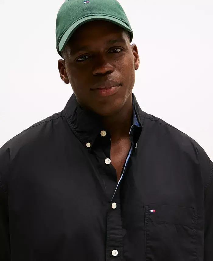 Stick with tradition but add an extra touch of class when you opt for this Tommy Hilfiger big & tall button-down shirt with a signature logo pocket. Button-down collar Button-front placket Short sleeves Left chest patch pocket with logo Cotton Machine washable Imported