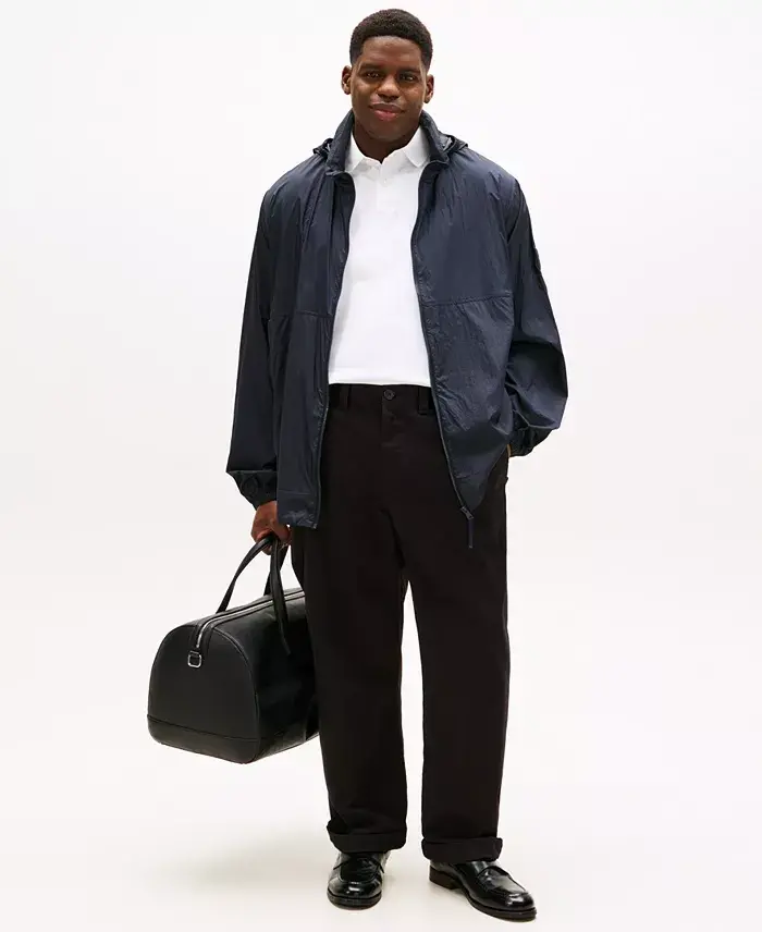 A smart, crisp pair of chinos is the hallmark of polished style. By Tommy Hilfiger. Tommy Hilfiger men's pants Zip fly with hood-and-eye closure; belt loops Pockets at front and back Approx. inseam: 32" Approx. Leg Opening: 21.5 Approx. Front Rise: 14.5" Featured on our Spring It List Cotton Machine washable Imported