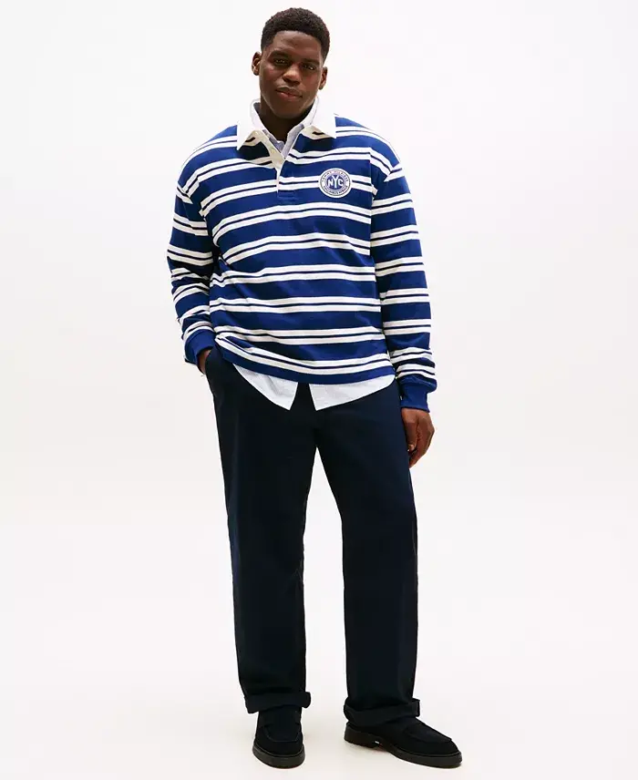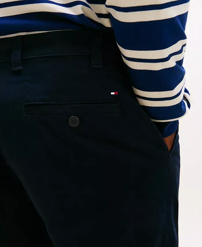 A smart, crisp pair of chinos is the hallmark of polished style. By Tommy Hilfiger. Tommy Hilfiger men's pants Zip fly with hood-and-eye closure; belt loops Pockets at front and back Approx. inseam: 32" Approx. Leg Opening: 21.5 Approx. Front Rise: 14.5" Featured on our Spring It List Cotton Machine washable Imported