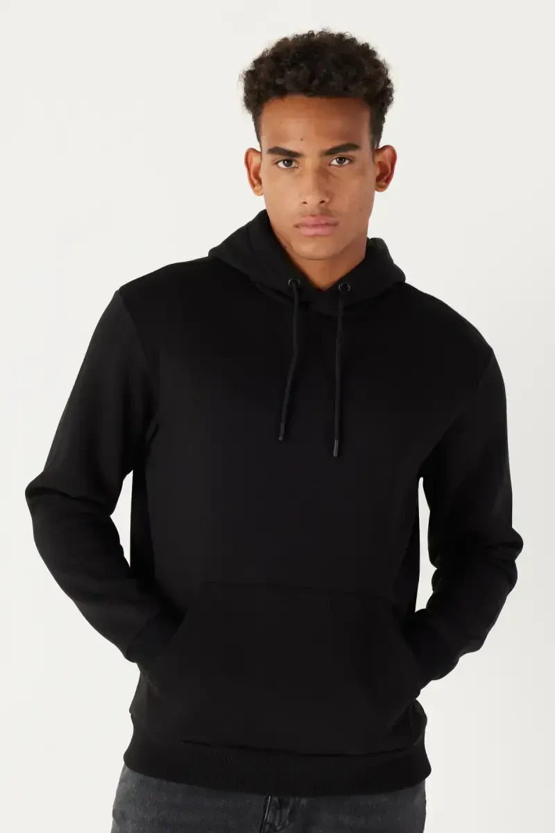 **Men's Black 2-Pack Cotton Sweatshirt: The Perfect Choice Offering Comfort and Style Together!**Product DescriptionMeet the Men's Black 2-Pack Cotton Sweatshirt, which will become an indispensable part of your wardrobe! This special pack is ready to accompany your every moment, from daily use to sports activities, by offering both comfort and style together. Thanks to its high-quality cotton fabric, it offers a breathable and comfortable experience all day long, while the noble stance of black easily adapts to any combination. The hooded design protects your head and neck in cold weather, while the kangaroo pockets offer practical use. Thanks to its standard fit regular cut, these sweatshirts, which fit perfectly to every body type, allow you to complete your style without sacrificing your comfort. Whether you prefer it while relaxing at home, meeting with friends, or doing sports, the Men's Black 2-Pack Cotton Sweatshirt will always be the right choice. These sweatshirts offer long-lasting use with their durable construction and provide a practical use experience thanks to their easy-to-wash feature. When the timeless elegance of black and the comfort of cotton come together, these 2-pack sweatshirts, which will be the staple of your wardrobe, are one of the basic pieces that every man should have. This special package, which you can consider as a gift for yourself or your loved ones, also attracts attention with its quality and affordable price. Reflect your style with the Men's Black 2-Pack Cotton Sweatshirt and enjoy the comfort!Product Features* High quality cotton fabric* 2-pack advantage* Black color* Hooded design* Kangaroo pockets* Standard fit regular cut* Suitable for daily use* Ideal for sports activities* Breathable fabric structure* Easy to wash and iron* Durable and long-lasting* Suitable for every body type* Comfortable and comfortable use* Stylish and modern look* Indispensable part of the wardrobeAdditional InformationPlease follow the washing instructions to use our product for a long time. Do not wash with colored products and iron at low temperature. Our products are made of 100% cotton and do not contain any substances harmful to health.