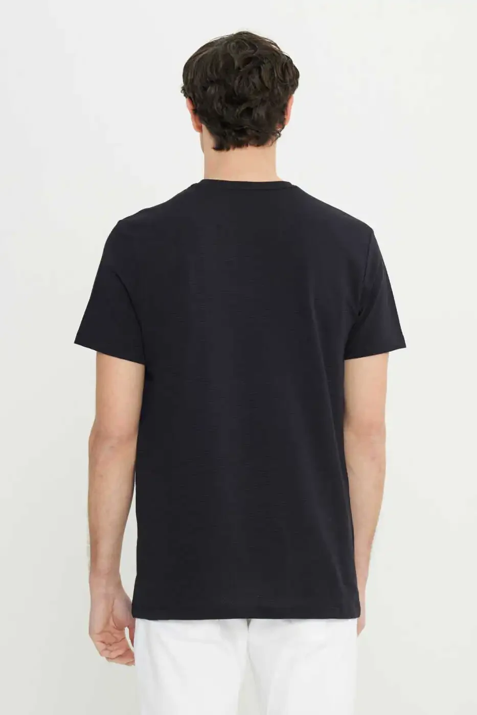 Experience the perfect blend of style and comfort with the Men's Black Cotton Slim Fit Narrow Cut Crew Neck Flexible T-Shirt, a must-have addition to your wardrobe. This T-shirt stands out with its slim fit and crew neck, reflecting the modern man's style, while offering all-day comfort thanks to its flexible structure. This special design by AC Sports is poised to be one of the most popular pieces of the summer collection. The fabric blend of 75% cotton, 23% polyester, and 2% elastane enhances the T-shirt's breathability while ensuring long-lasting use. Carrying the elegance of black, this T-shirt complements any combination with its plain design, highlighting your style. Whether for daily use or a special event, it ensures you always feel stylish and comfortable. The pocketless design preserves the T-shirt's simple and modern look, while the slim fit accentuates your body lines. The flexible fabric does not restrict your freedom of movement, offering a comfortable experience throughout the day. This T-shirt will be one of the essential pieces of your wardrobe, always giving you a stylish and well-groomed appearance. Produced with AC Sports quality, this T-shirt is an ideal choice for men seeking both style and comfort. It keeps you cool and fresh on hot summer days, while its flexible structure allows you to move comfortably in any activity. Make a difference in any environment with the timeless elegance of black. The Men's Black Cotton Slim Fit Narrow Cut Crew Neck Flexible T-Shirt will be indispensable for stylish men.