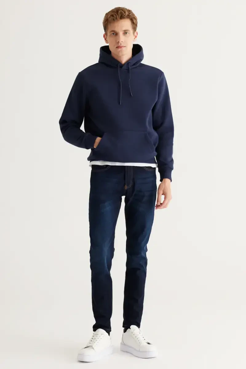 Men's Black-Navy Blue 2-Pack Cotton Sweatshirt Hooded Kangaroo Pocket Standard Fit Regular Cut. Model Measurements: Height: 1.88 cm, Chest: 98 cm, Waist: 75 cm, Hips: 99 cm. Model Wears Size: M. 65% Cotton 35% Polyester. Made of Cotton Blend Yarn.
