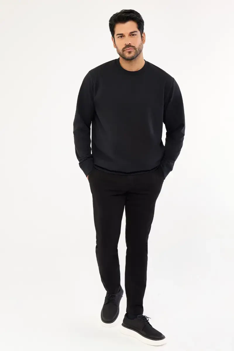 The Men's Black Standard Fit Regular Cut 2-Thread Cotton Crew Neck Sweatshirt, offered with the assurance of Altınyıldız Classics, combines both a stylish appearance and superior comfort. This sweatshirt, which will be indispensable for daily use, is a candidate to be one of the basic pieces of your wardrobe. Thanks to its standard fit cut, it offers all-day comfort with its structure that fits the body but does not restrict freedom of movement. The crew neck design allows you to achieve a modern and stylish look, while the black color easily adapts to any combination. Whether you combine it with jeans or tracksuits, it always helps you reflect your style. Thanks to the 2-thread cotton weaving technology, it offers both a durable and soft touch. This special weave ensures that the sweatshirt is long-lasting and gives your skin a gentle feel. Its long-sleeved design keeps you warm in cool weather and offers ideal use during seasonal transitions. Designed as part of the Sportswear collection, this sweatshirt is also a comfortable option that you can easily prefer in your sports activities. The pocket details offer a practical solution for carrying your small items with you. You can safely carry your keys, phone or other personal belongings. With its wide user base appealing to all age groups, it is an ideal choice for everyone. Normal cut and regular fit provide all-day comfort, while the standard length cut adapts to every body type. This product, which is an environmentally friendly choice, is made from recyclable materials, thus supporting the understanding of sustainable fashion. It is a perfect option for those who do not want to compromise on their elegance and are environmentally conscious. Thanks to its easy care feature, it offers practical use. Cleaning in accordance with the Type 1 washing instructions saves time and helps the sweatshirt stay like the first day. This sweatshirt allows you to reflect your style and not compromise on your comfort. Discover this stylish and useful piece that will be indispensable for your wardrobe now!