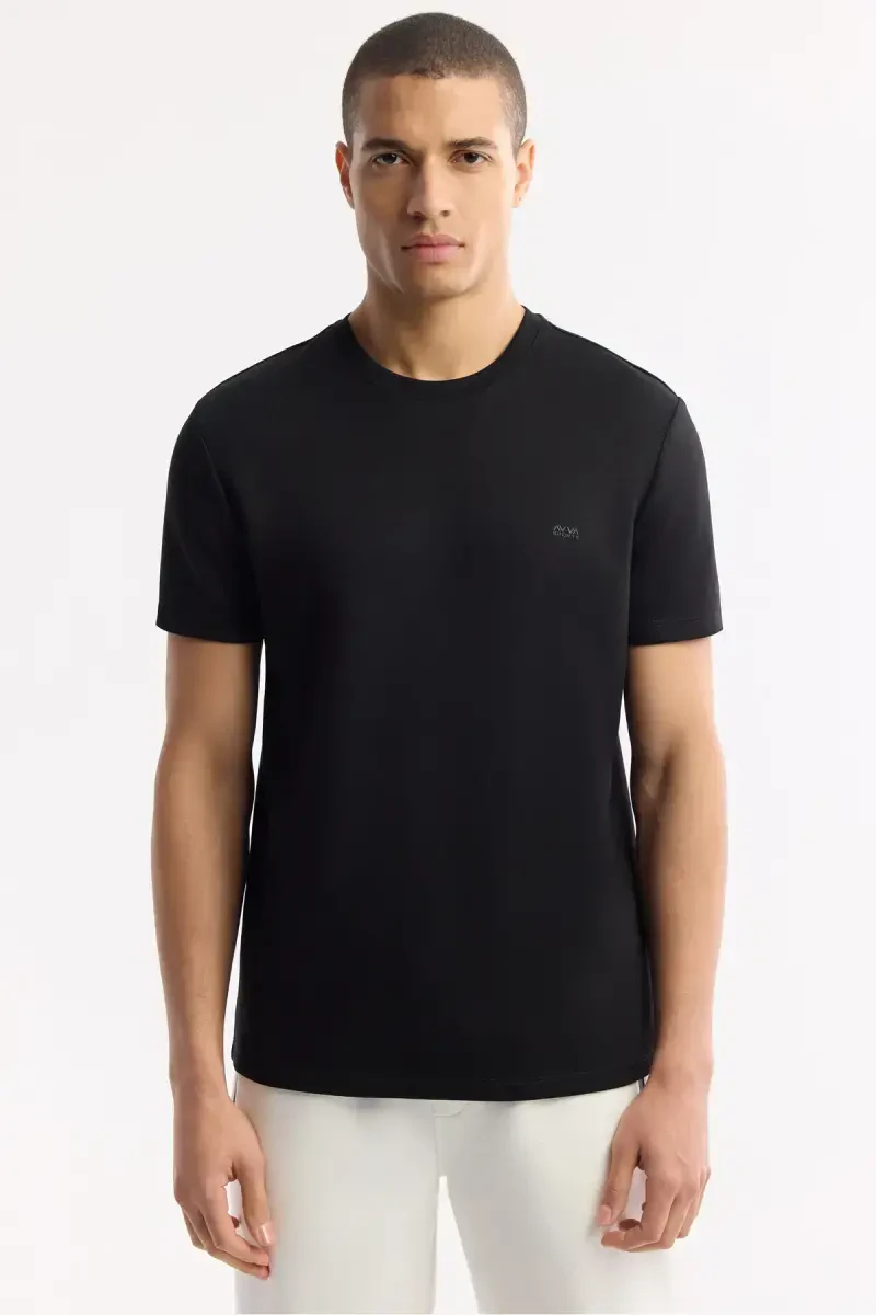 This men's black t-shirt, which combines style and comfort, will be an indispensable part of your wardrobe. The crew neck adds a modern and sporty look, while the logo print on the back and chest adds a unique touch to your style. The regular fit design provides a comfortable fit and makes you look stylish in everyday life and on special occasions.