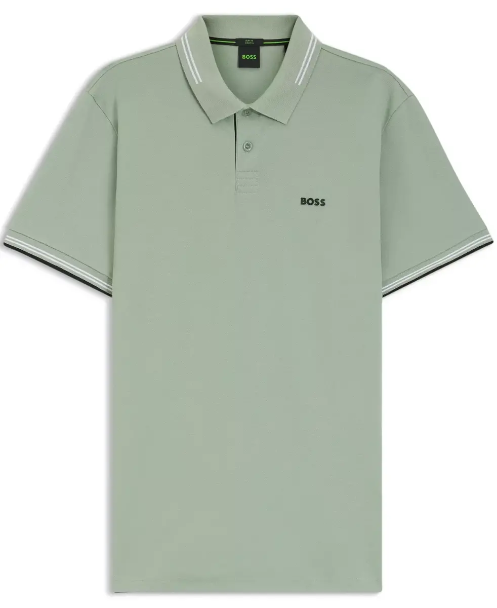 A stylish and modern choice from BOSS Menswear: Men's Branding Stretch-Cotton Slim-Fit Polo Shirt-Open Green. This contemporary polo shirt stands out with its body-hugging cut and striking details. The slim fit cut creates a modern and dynamic silhouette, while the stretch cotton fabric offers all-day comfort. The open green color adds a fresh touch to your wardrobe, while contrasting stripes and brand details add a unique touch to the design. This polo shirt, which you can choose for daily use or more stylish combinations, will be indispensable for stylish men. Designed with BOSS quality and elegance, this t-shirt will allow you to make a difference in any environment. The product is L size as on the model, the model's height is 188 cm, chest circumference is 96 cm, waist circumference is 76 cm and hip circumference is 94 cm. These measurements will give you an idea of how the product will look on you. Thanks to its slim fit, this polo shirt, which fits snugly to the body, offers a modern and dynamic look. Its flexible cotton fabric provides comfort all day long without restricting your freedom of movement. The open green color helps you create a lively and energetic style, especially in spring and summer, while contrasting stripes and brand details add a sophisticated touch to the design. BOSS Men's Branding Stretch-Cotton Slim-Fit Polo Shirt-Open Green can be easily combined with other pieces in your wardrobe. This polo shirt, which you can easily wear with jeans, chino pants or shorts, can be completed with sneakers or loafers, allowing you to create different styles. Whether you prefer it for weekend trips, meeting friends, or a more formal event, this t-shirt will always keep you looking stylish and well-groomed. Produced with BOSS quality and workmanship, this polo shirt is long-lasting and durable. Thanks to high-quality materials and careful stitching, it will be an indispensable part of your wardrobe for many years. It is also very easy to care for thanks to its machine washable feature. If you want to add a modern and stylish touch to your wardrobe, BOSS Men's Branding Stretch-Cotton Slim-Fit Polo Shirt-Open Green is for you. With this polo shirt, you can always look stylish and confident.