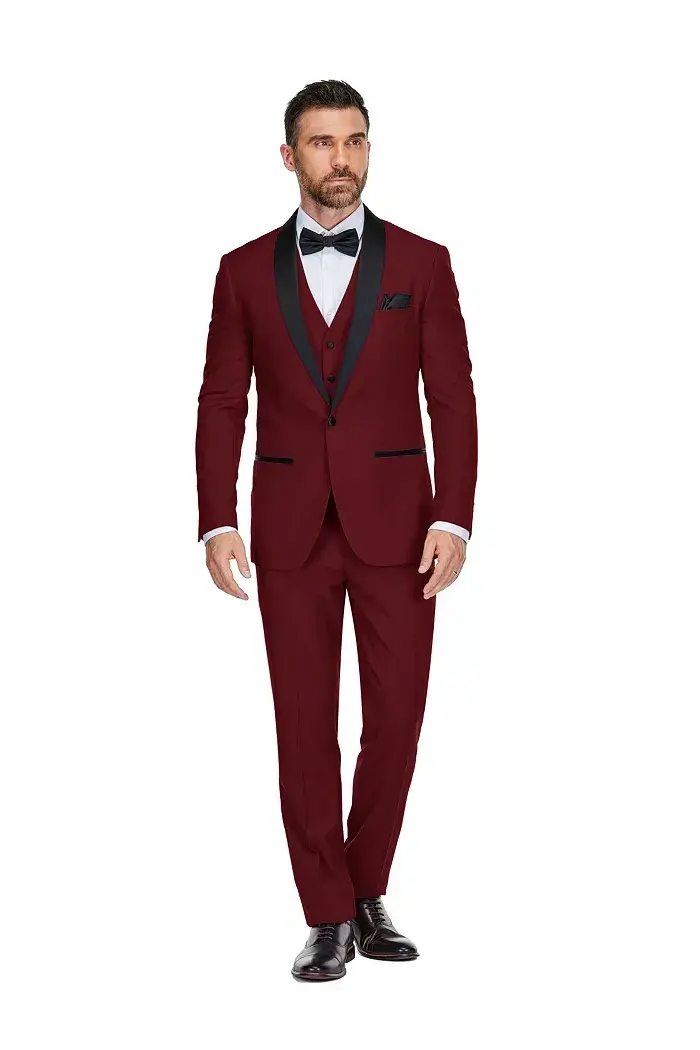 Men's Braveman 3-Piece Slim Fit Shawl Lapel Tuxedo-Burgundy
