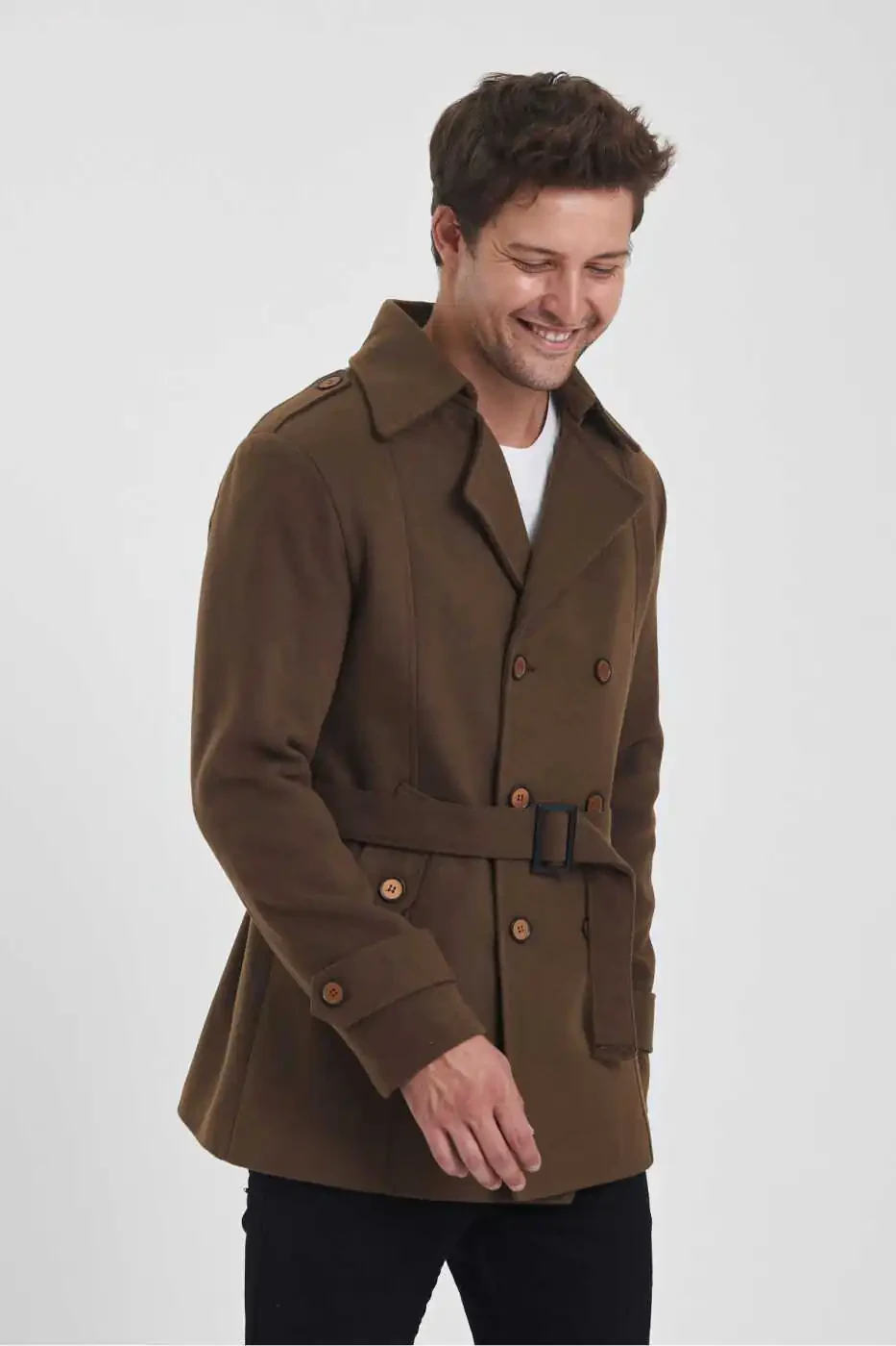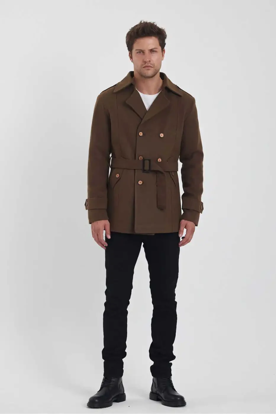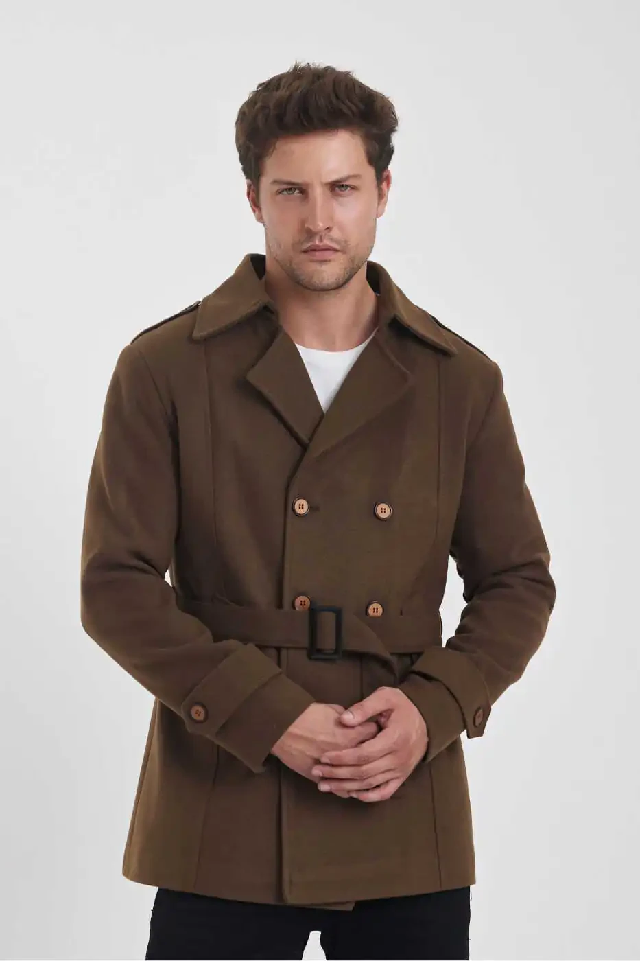 Men's brown double-breasted slim fit wool overcoat is the perfect choice for stylish men. Order yours today to add sophistication to your style!