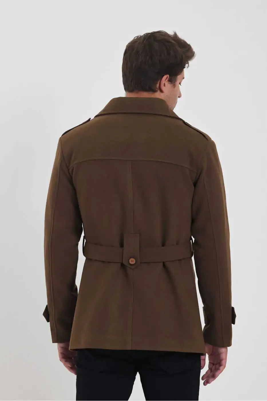 Men's brown double-breasted slim fit wool overcoat is a piece that you can comfortably wear in everyday life, at work or at special events.