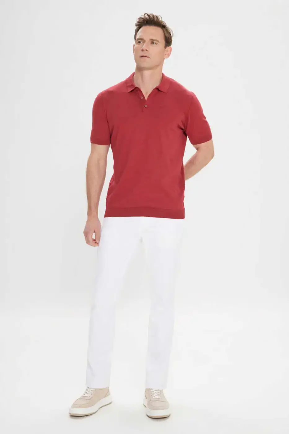 A stylish and comfortable option for men from ACCo/Altınyıldız Classics: Burgundy Standard Fit Normal Cut 100% Cotton Self-Patterned Polo Collar Knitted T-Shirt. This t-shirt is a perfect choice for daily use, offering both a stylish and comfortable look. Thanks to its 100% cotton structure, it provides breathability and all-day comfort. Its self-patterned texture creates a simple and stylish look, while the polo collar detail adds a classic touch. Thanks to its normal cut, it fits perfectly to the body and provides freedom of movement. The burgundy color matches with any combination and becomes one of the indispensable pieces of your wardrobe. This t-shirt, which belongs to the summer collection, keeps you cool and comfortable in hot weather. It can be washed in the machine at 30 degrees, ironed at low temperature and dry cleaned. It is recommended not to use bleach and not to tumble dry. You can order quickly and easily with Trendyol assurance. Limited stock, order now!