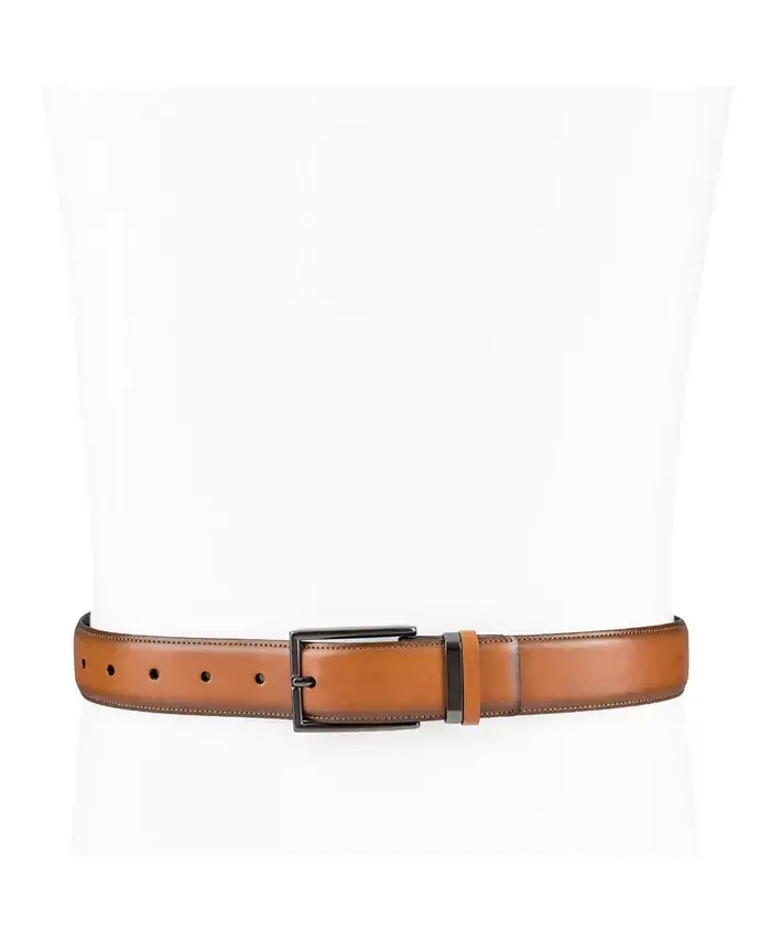 Men's Burnished Edge and Metal Loop Dress Belt, Created for Modazone-Tan