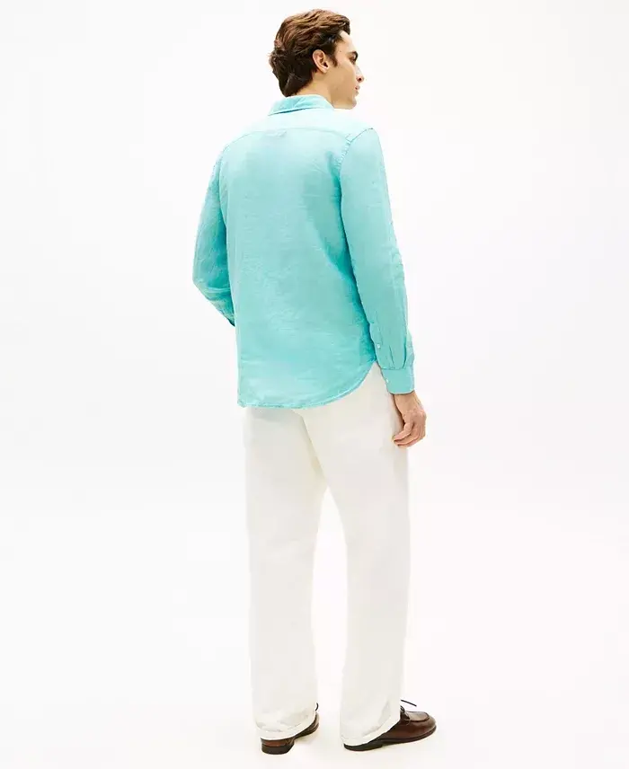 Perfect for dressing up or down for any occasion, this versatile Tommy Hilfiger shirt is crafted in linen for a soft, breathable feel. Regular Fit Button-down collar Button-front closure Long sleeves with button cuffs Embroidered flag at left chest 100% linen Machine wash Imported