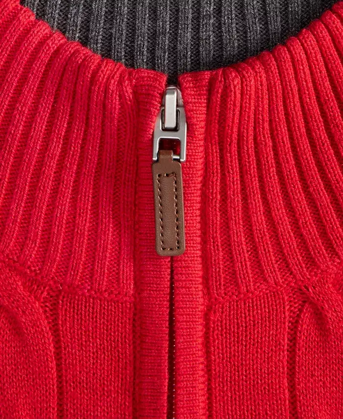 Men's Cable Knit Quarter-Zip Sweater, Modazone Exclusive - Fire