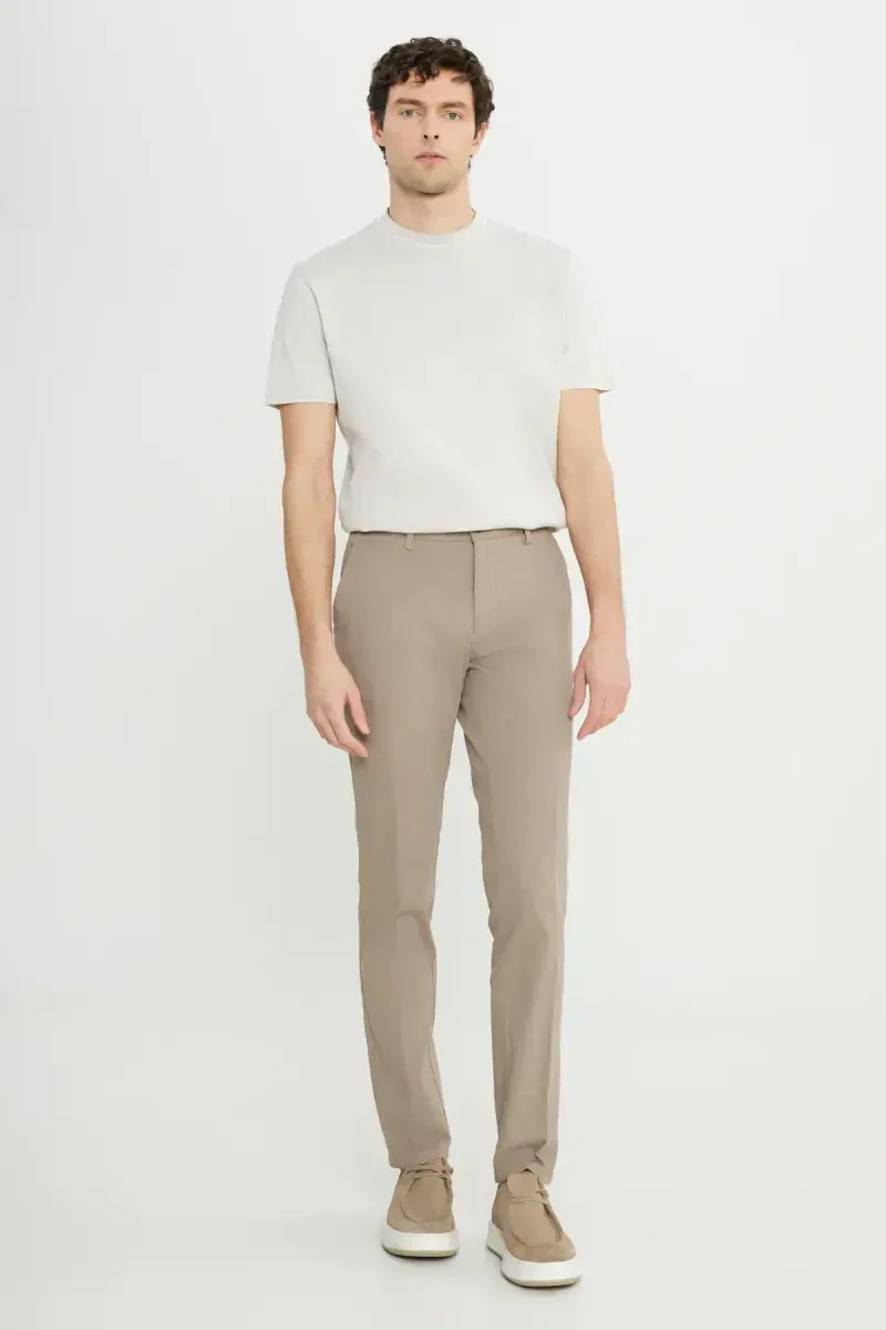Combine style and comfort with the Men's Camel Slim Fit Narrow Cut Cotton Stretch Textured Side Pocket Trousers. These specially designed trousers are one of the essential pieces that should be in the modern man's wardrobe. Thanks to its slim fit cut, it offers a stylish and elegant look that fits the body. The narrow cut makes the legs look longer and fitter, increasing your self-confidence. The cotton fabric provides breathability and comfort all day long, while its flexible structure does not restrict your freedom of movement. The textured weave adds a different dimension to the trousers, moving them away from the ordinary and highlighting your style. Side pockets allow you to easily carry the items you need in daily use. You can use these trousers in business life or daily activities, allowing you to create different combinations. It easily adapts to shirts, t-shirts or jackets and helps you maintain your elegance in any environment. Camel color adapts to every season with its warm and natural tone. This color can be easily combined with different colors and adds originality to your style. Produced with Altınyıldız Classics quality, these trousers are designed for long-lasting use. Thanks to high-quality materials and careful workmanship, it will be an indispensable part of your wardrobe for many years. Taking care of the trousers is also very easy. Thanks to its machine washable feature, it offers practical use. The need for ironing is also minimal, which saves you time. These trousers are an ideal choice for men who want both elegance and comfort. It is a piece that you can easily use in daily life and will complete your elegance on special occasions. These trousers, which will make you feel good, are a candidate to be one of the most loved pieces in your wardrobe. With its slim fit cut, cotton and flexible fabric, textured weave and side pockets, these trousers are of a quality to meet the expectations of stylish men. Don't miss this product sent by KASIM METİK and bring a breath of fresh air to your style.