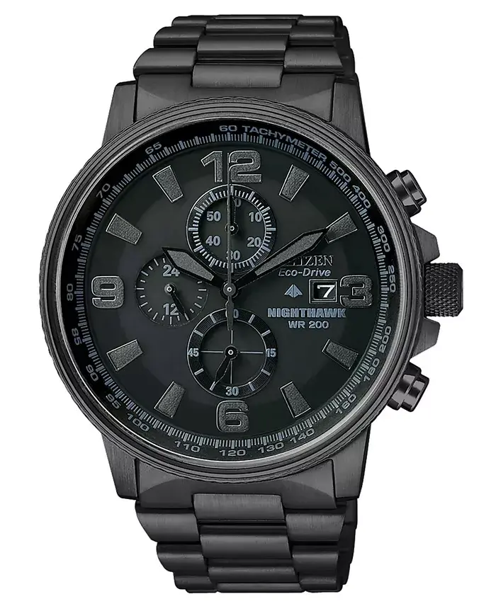Men's Chronograph Eco-Drive Nighthawk Black Ion Plated Stainless Steel Bracelet Watch 43mm CA0295-58E