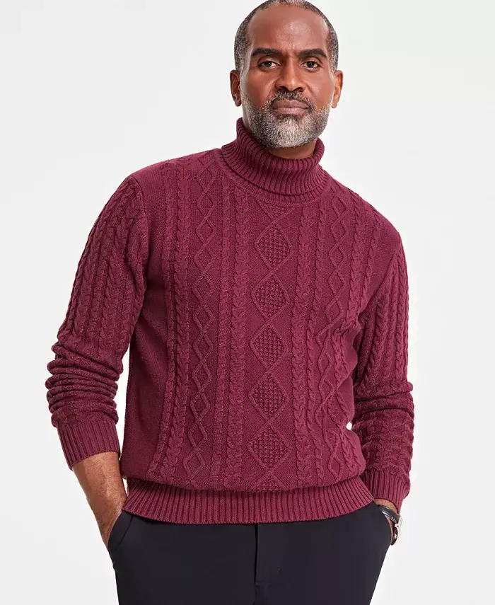 On its own or paired with a blazer, exude gentlemen style with the classic turtleneck of this chunky cotton sweater from Club Room. Regular fit Ribbed turtleneck collar Long sleeves with ribbed cuffs Modazone Exclusive All cotton Machine washable Imported