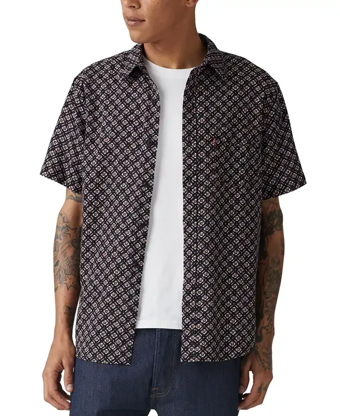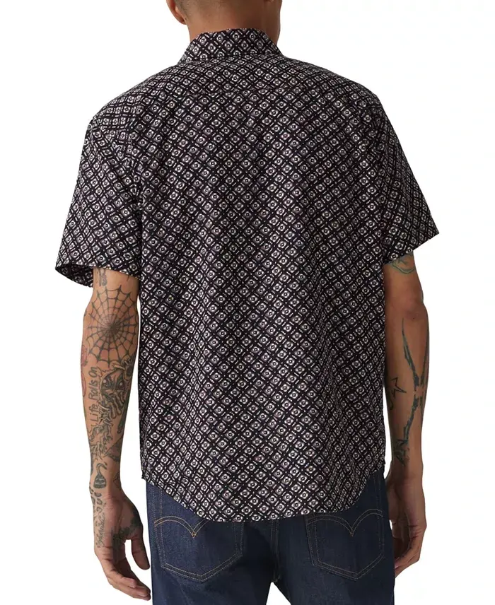 Men's Classic 1 Pocket Short Sleeve Regular Fit Shirt - Quinn Geo Jet Black