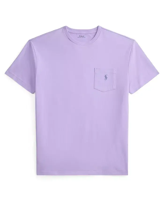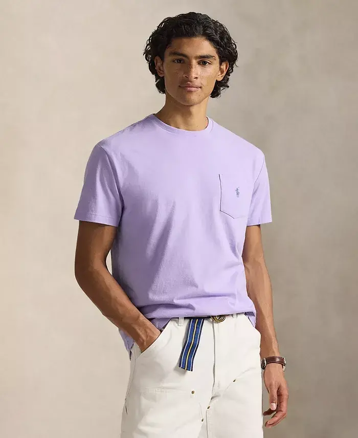 Washed for a soft feel, this jersey T-shirt from Polo Ralph Lauren is an off-duty essential you'll reach for again and again. Size medium has an approx. 28-1/2" front body length Classic fit: Polo Ralph Lauren's roomiest silhouette Crewneck; pullover closure Cut for a lower armhole and a fuller sleeve that falls closer to the elbow Also available in Active Fit (approx. 1" trimmer at the chest and 1" shorter at the body) and Custom Slim Fit (approx. 2-1/2" trimmer at the chest and 1" shorter at the body) Short sleeves Signature embroidered pony at the left chest patch pocket 100% cotton Machine wash Imported