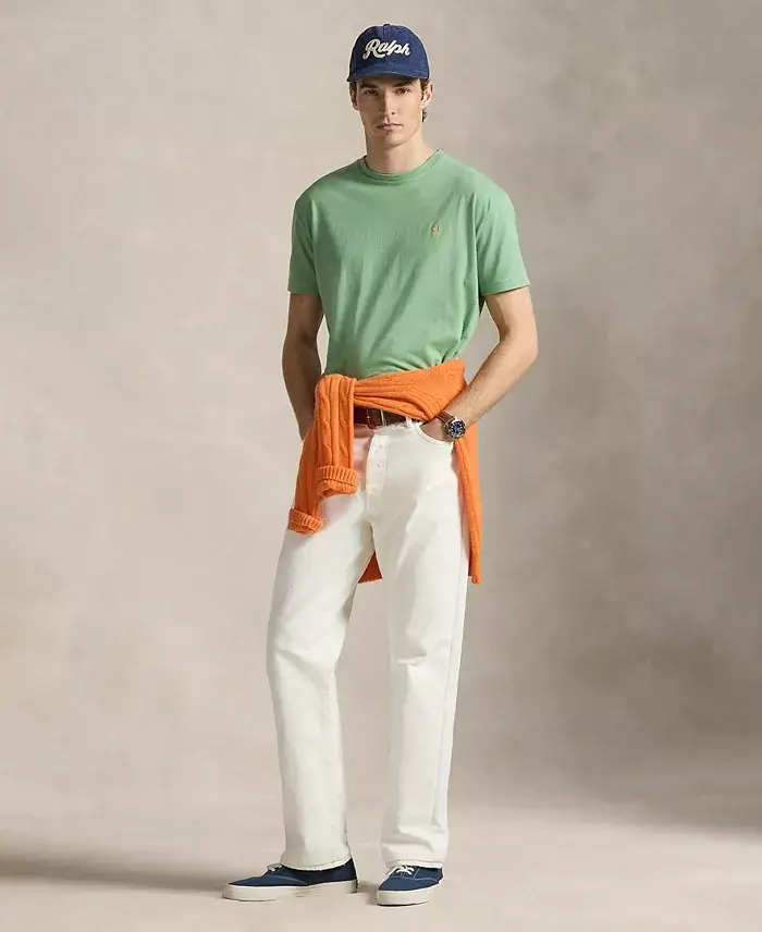 Washed for a soft feel, this jersey T-shirt from Polo Ralph Lauren is an off-duty essential you'll reach for again and again. Classic fit (approx. 2-1/2" wider at the chest and 1" longer at the body) Crewneck; pullover closure Also available in active fit (approx. 1-1/2" wider at the chest) Short sleeves Signature embroidered pony at the left chest A timeless gift for your next occasion. Size medium has an approx. 28-1/2" front body length 100% cotton Machine wash Imported