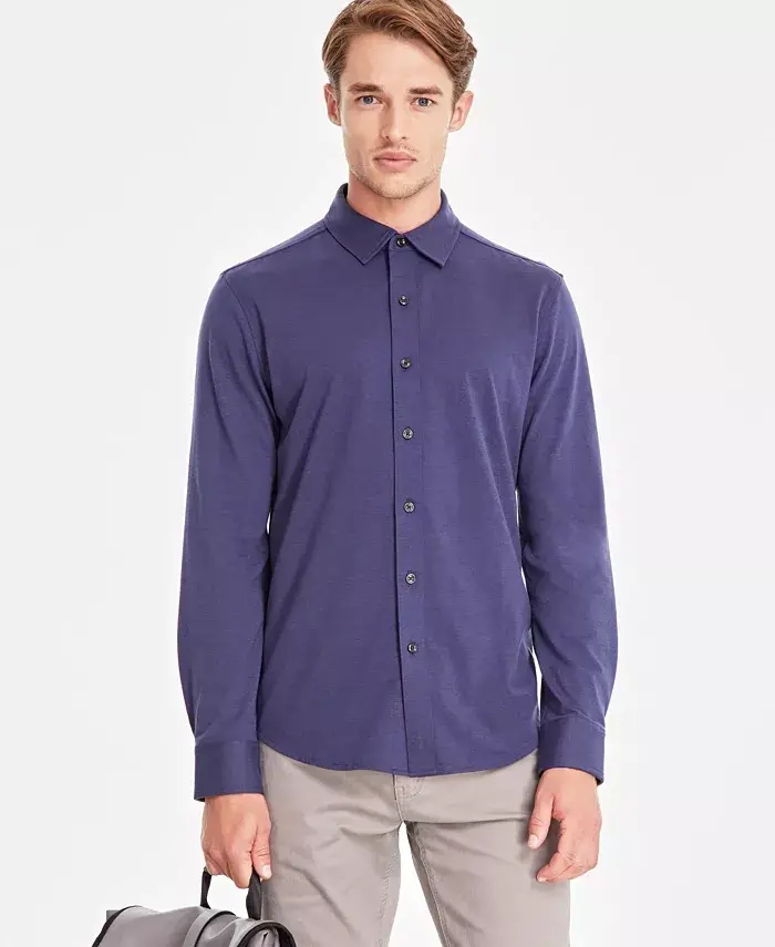 Meet the Men's Classic-Fit Heathered Jersey-Knit Button-Down Shirt, Created for Modazone - Neo Navy, a wardrobe essential. This stylish and comfortable shirt is exclusively designed for Modazone, adding a sophisticated touch to your casual style while providing all-day comfort. Its super-soft jersey-knit fabric gently touches your skin and does not restrict your freedom of movement. The heathered texture gives the shirt a modern and dynamic look, while the classic cut provides a perfect fit for every body type. At approximately 29-1/2" long, this shirt can be easily paired with pants or shorts. The classic point collar and buttoned cuffs add timeless elegance to the shirt, while the button-down front ensures ease of use. Whether you wear it in business life, in your daily activities, or at special events, this shirt will always keep you looking stylish and well-groomed. Thanks to its stretch performance, you can move comfortably throughout the day and carry out your activities without being restricted. This shirt not only looks stylish but also contributes to sustainability. By choosing this brand's cotton products, you are investing in Better Cotton's mission. This product is sourced via a mass balance system and therefore may not contain Better Cotton. All cotton in this product is U.S. Cotton that is verified by the Trust Protocol. The Men's Classic-Fit Heathered Jersey-Knit Button-Down Shirt, Created for Modazone - Neo Navy, is the perfect choice that combines comfort, style, and sustainability. With this shirt that must be in your closet, always feel stylish and comfortable. The Neo Navy color easily adapts to all kinds of combinations, while the heathered texture adds a different touch to the shirt. Produced with Modazone quality, this shirt will be an indispensable part of your wardrobe for many years. Whether you combine it alone or with a jacket or blazer, you will always look stylish with this shirt. Ideal for daily use, this shirt can also accompany you on your special days. It is the perfect choice for men who are looking for style and comfort together.