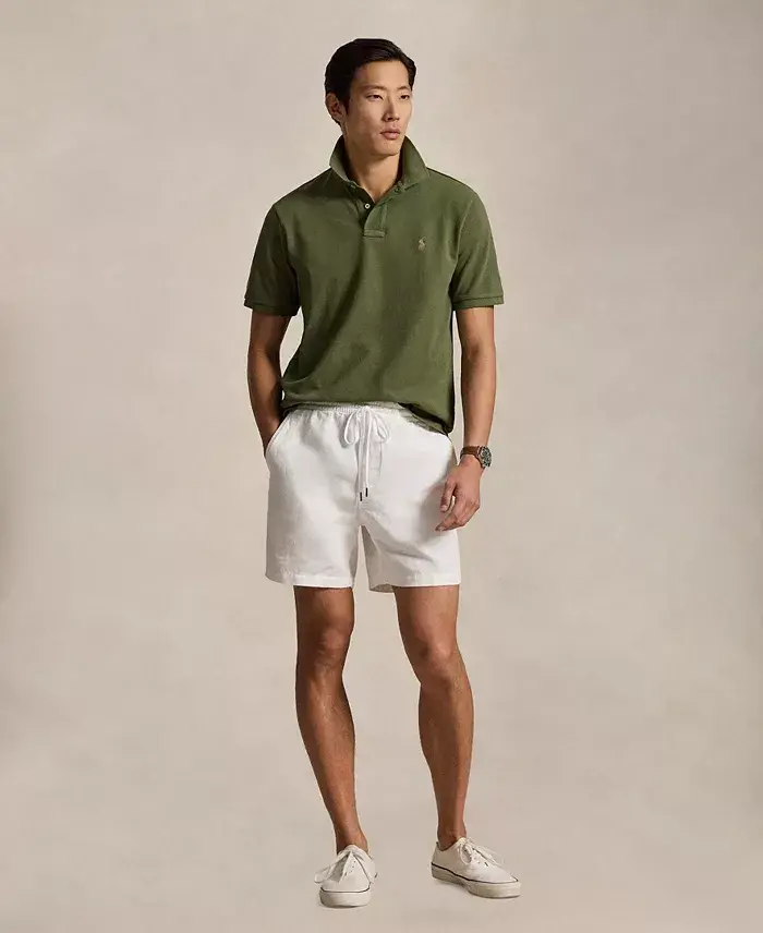 Ralph Lauren debuted his original Polo shirt in 1972, and today the iconic design is offered in a wide array of colors and fits. This vibrant version is made from breathable cotton mesh and cut for a roomy silhouette. Size medium has an approximate 28-1/2" front body length and 30-1/2" back body length Classic fit: Polo Ralph Lauren's roomiest silhouette Ribbed polo collar; two-button placket Short sleeves with ribbed armbands Tennis tail: uneven hem that helps to keep the shirt in place when tucked in Ralph Lauren's signature embroidered pony accents the left chest; color may vary A timeless gift for your next occasion. Model is 6'1"/185 cm. and wears a size medium 100% cotton Machine wash Imported