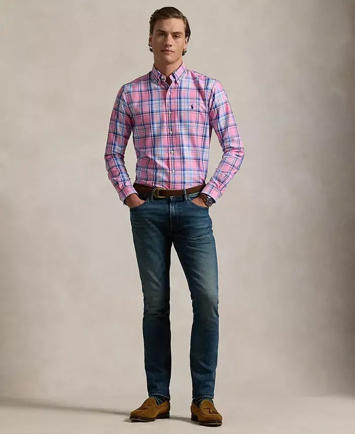 Men's Classic-Fit Performance Oxford Shirt - Pink Blue Multi