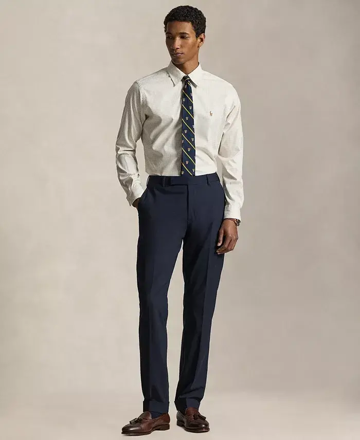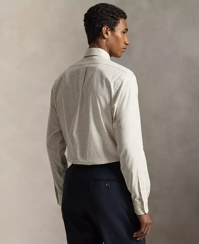 Polo Ralph Lauren's shirt is crafted from a stretchy oxford fabric that is made with COOLMAX® fibers to help keep you cool, dry, and comfortable. Approx. model height is 6'1" and he is wearing a size medium Size medium is approx. 31-1/2" long Classic-Fit: our roomiest silhouette Cut for a lower armhole and a fuller sleeve Button-down point collar Buttoned placket Long sleeves with buttoned barrel cuffs Split back yoke with a box pleat ensures a comfortable fit and a greater range of motion Multicolored signature embroidered Pony at the left chest A timeless gift for your next occasion. Polyester, nylon Machine wash Imported
