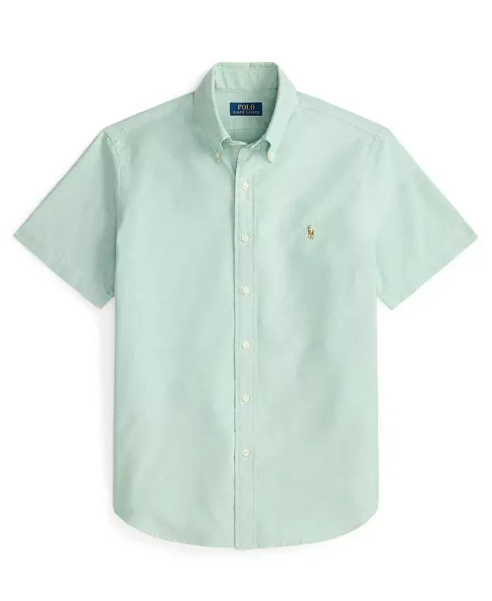 Polo Ralph Lauren's short-sleeve version of our signature cotton oxford shirt is a classic choice for beach days, barbecues, and everything in between. Approx. model height is 6'1" and he is wearing a size medium Size medium is approx. 31-½" long Classic fit: our roomiest silhouette Cut for a lower armhole and a fuller sleeve Button-down point collar Buttoned placket Short sleeves Split back yoke with a box pleat ensures a comfortable fit and a greater range of motion Multicolored signature embroidered Pony at the left chest 100% cotton Machine wash Imported