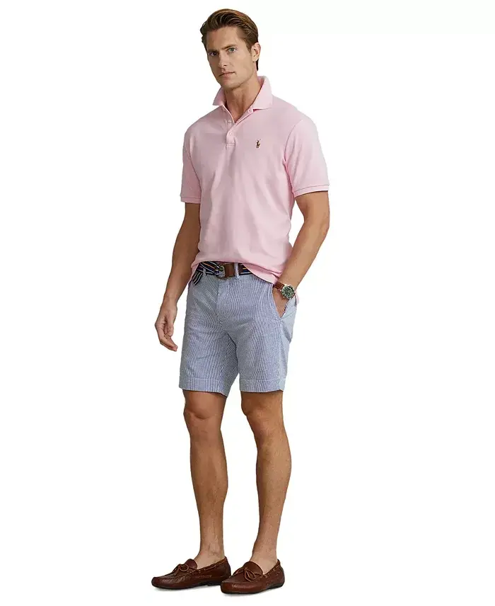 Ralph Lauren debuted his original Polo shirt in 1972, and today the iconic design is offered in a wide array of colors and fits. This short-sleeve version is made from breathable cotton mesh and cut for a roomy silhouette. What's more, the tennis tail helps keep the shirt in place when tucked in, and a signature embroidered pony gives it a classic touch. Approx. model height is 6'1 and he is wearing a size medium Size medium has a 28½" front body length and a 29½" back body length. Classic fit: the roomiest silhouette. Polo Ralph Lauren's Polo shirts also come in custom slim-fit (the trimmest). Ribbed Polo collar with two-button placket. Short sleeves with ribbed armbands Tennis tail: uneven hem that helps to keep the shirt in place when tucked in. Ralph Lauren's signature embroidered pony accents the left chest; color may vary A timeless gift for your next occasion. All cotton Machine washable Imported